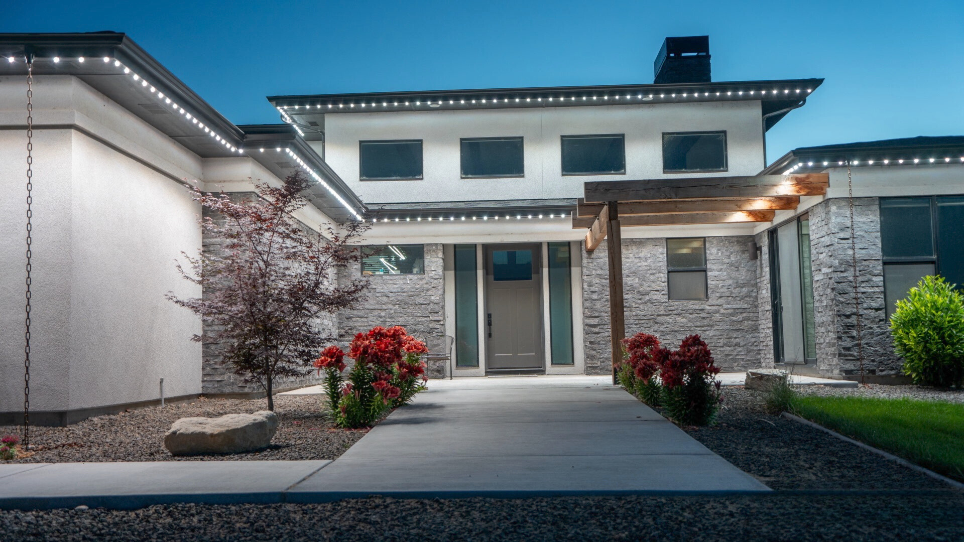 Lighting is becoming an integral part of home design. Permanent lighting systems are being used to accentuate rooflines, entryways, and landscaping features, adding depth and sophistication to homes.
